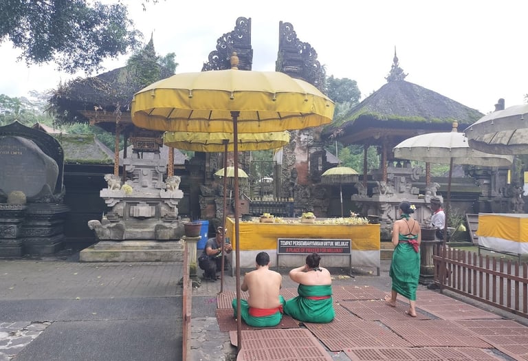 Upon entering, visitors are provided with a Sarong, a traditional Balinese cloth that is mandatory to wear to respect the temple’s sanctity. However, the standard entrance ticket is for the "Visit Only" option. This means visitors can explore the temple's stunning courtyards, ancient shrines, and natural beauty but won’t have access to the holy spring pools or the chance to participate in the Melukat Ceremony.